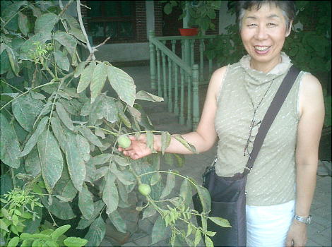 wifeがさわっているのはナツメ(だったと思う)。イチジクやその他の果実も庭にたくさん植わっていた。