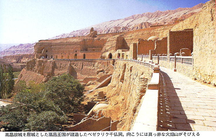 トルファンの東50kmほど、高昌古城から東に20kmほどの火焔山の側にあるべゼクリク千仏洞は、 麹氏高昌国から元代ま