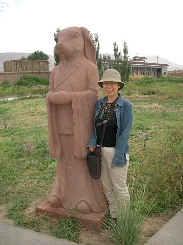 十二支像もここから出土した俑をモニュメント化してある。私とWIFE、ガイドの董さんと、それぞれ自分の干支と並んだ。