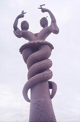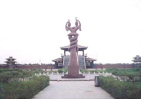 入り口の広場にある、西域の伝説にもとづく石像。
