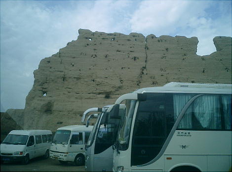 舗装されていない、所々雨水の溜まった駐車場に、バスも乗用車も一緒に留める。ガイド付きの観光客は優先されるのか、そ