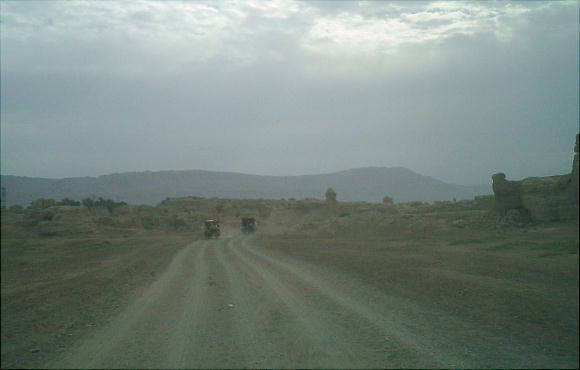 府や寺院のあった所を目指す。進んで行く道の両側にも、風化した建物跡が並んでいる。