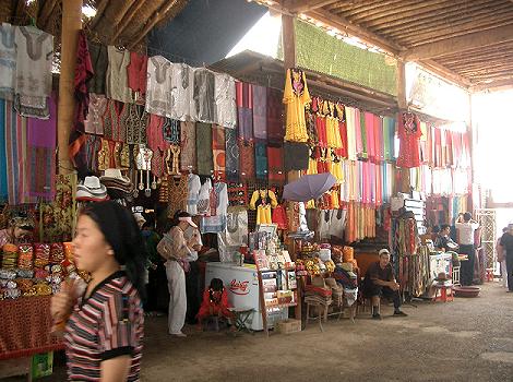 バスも、人でごった返す、天幕に覆われた屋台街の中を、ぶつかりそうになりながらクラクションを鳴らして進んで行く。