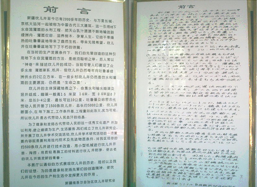 トルファンのカレーズは、井戸は最も深いもので67m、長さは普通3km、最も長いものは10kmで、トルファンには約