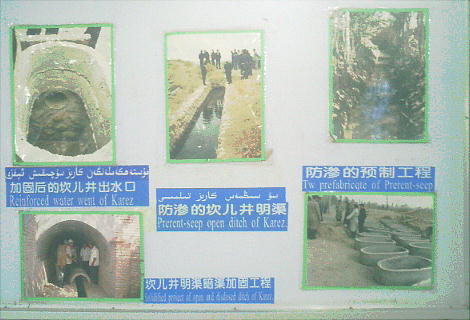 下を流れる地下水路のことを言う。トルファン・ハミ(哈蜜)・アクス(阿克蘇)3地区に多いが、特に吐魯番盆地が最も多い。