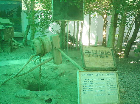 ブドウ畑の中に観察園があり、カレーズに関する古資料や、作業工具などが陳列してあり、また野外では実際にカレーズを観光