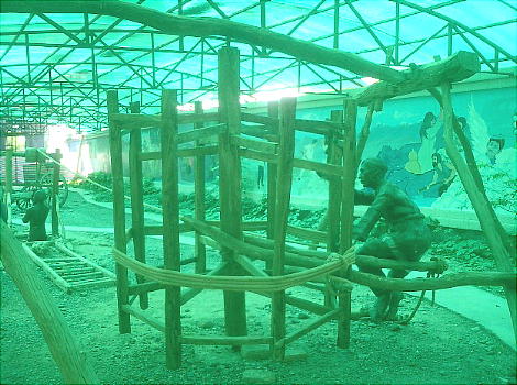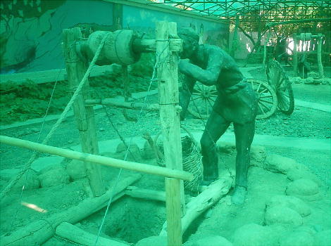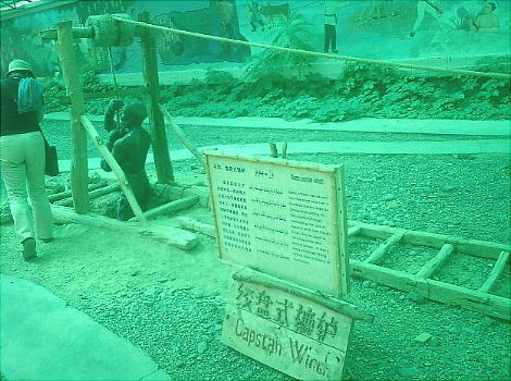 人々がどうやって水を吸い上げたかを、模型を使って説明してある。
