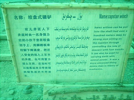 1500本のカレーズが掘られ、縦横総長4000kmと言う。構造は簡単であるが、水量は安定しており、水の蒸発を防ぐ