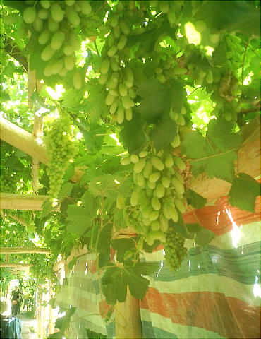 手の届くところに葡萄の房が垂れ下がっているが、日本と違って誰も取っていない。