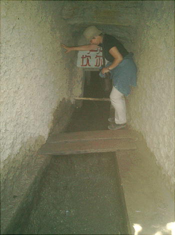 竪孔の直径は1〜1.5m、また地下水路の大きさは大人が屈んでやっと歩ける程度である。もっとも地下水路は自然に崩れて