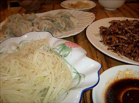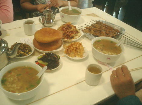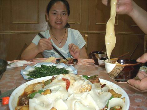 ンの麺を細かく切ったお粥のようなもの(旗子)、肉と野菜炒め、パンなどが出てきたがとても食べきれなかった。食後、