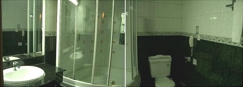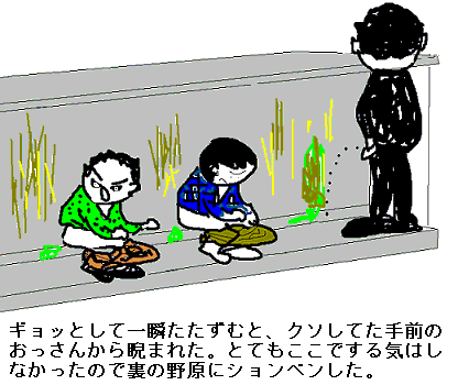 上右が恐怖のトイレ。外見は普通だが中へ入ると、男用(下左)と女用(下右)。よほど驚いたのだろう、嫁藩も現場を写していた。