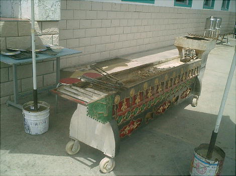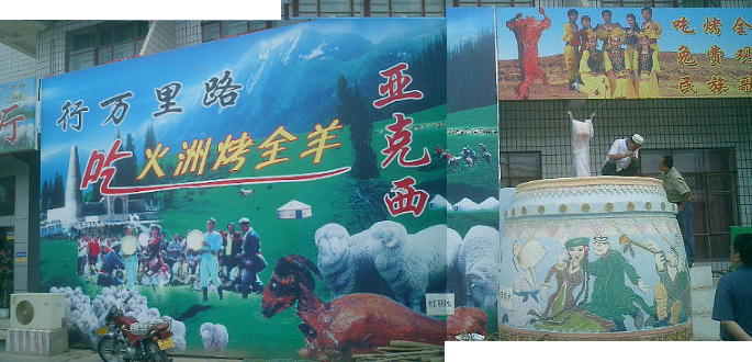 昼食はウルムチのど真ん中の料理店で回族料理。おいしくて評判の店だそうで大勢が並んでいた。シシカバブー、ラーメ