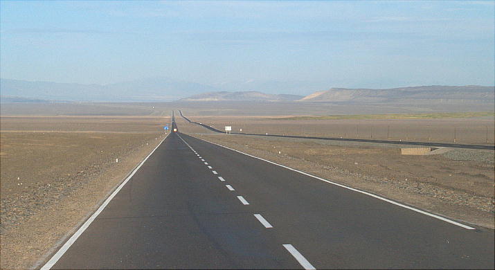 固い地面だが、うねりを見せる限りない広がりが訴える印象は、やはり砂漠である。車は、油断するとタイヤが埋まってぬけ