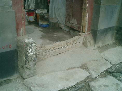 屋根の形と敷居の両脇に小さな石柱が立っている家は、かって紫禁城に働いていた役人クラスの家だという。