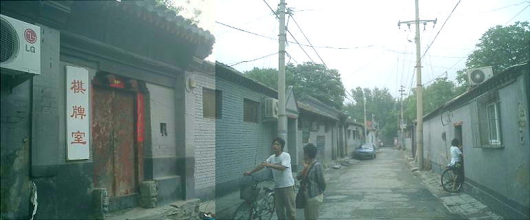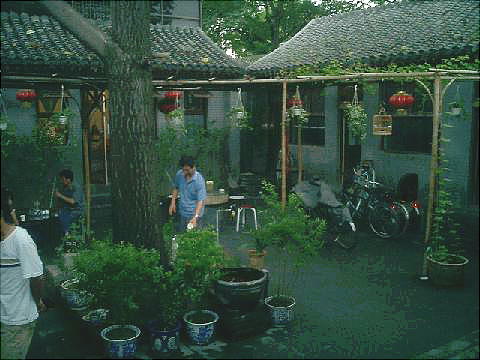 が生えている。広場を四軒の住宅が取り囲む。ここは今の持ち主(上右)のお爺さんが買ったものだそうで、「最近は北京の