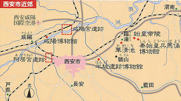 旧跡を残してきた。中でも秦の始皇帝陵・兵馬俑はその代表である。秦の時代は咸陽と言われていたが、正確には西安の郊