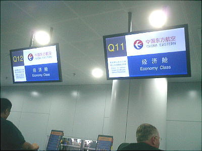 しい。前の便がまだ出発していないのだ。またロビーへ引き返し、43番に並び直すが、何の案内もない。中国語でアナウ