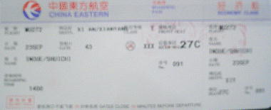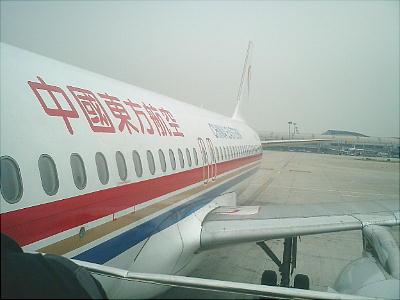 バスで、東方航空の飛行機まで運んでもらう。中国東方航空に乗り込む。西欧人たちのツアーが大勢いた。東京からの乗り