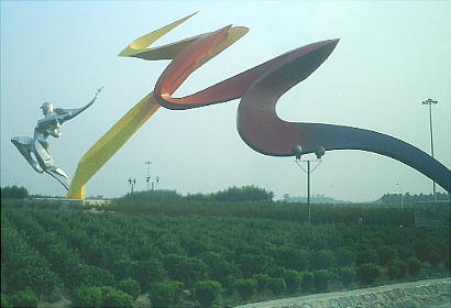 したので空港での記念撮影をし忘れた。ゲートをでるとガイドの張さんが迎えに来てくれていて「歴史クラブ」と書いた紙
