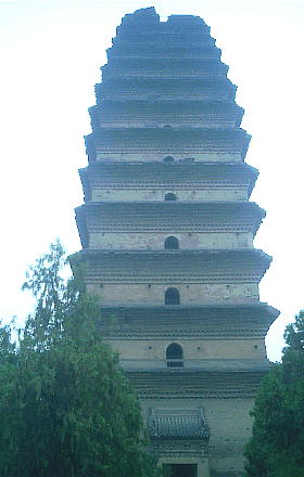 といわれる。塔は義浄が翻訳した経典を収めるため、景龍年間(707〜710)に、煉瓦造り、高さ45m、15層で建立された