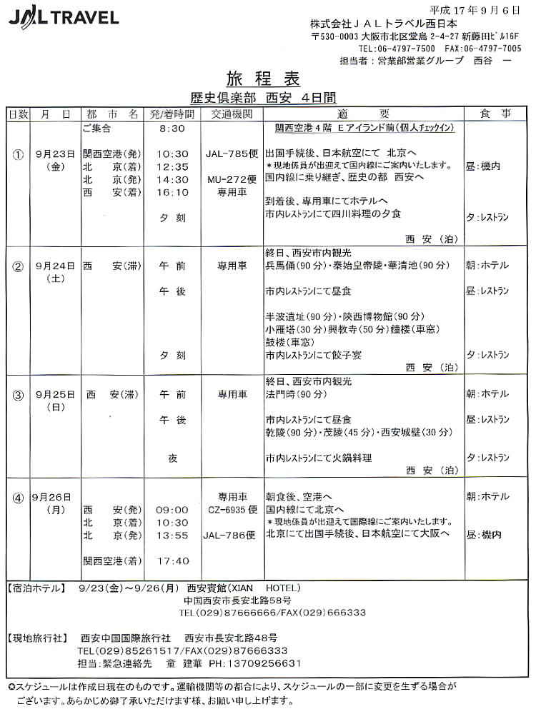 もそも最初は、私個人としてはどっかのツアーでもよかったのだが、河内さん他が、「西安にじっくり腰をすえて慌しい