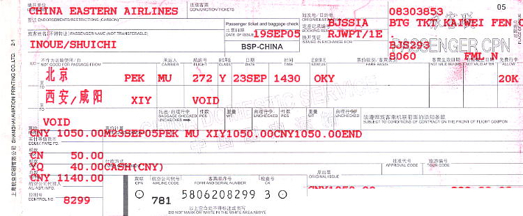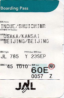13:45(日本時間のまま)北京に到着。2時間45分の空の旅。北京空港では、金さんという中年女性が搭乗券を持っ