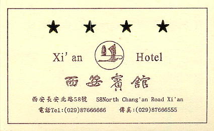 本日の宿舎「西安賓館」。四ツ星ホテル。最初は五ツ星だったのだが、河内さんが高いというので1つ格を落とした。そ