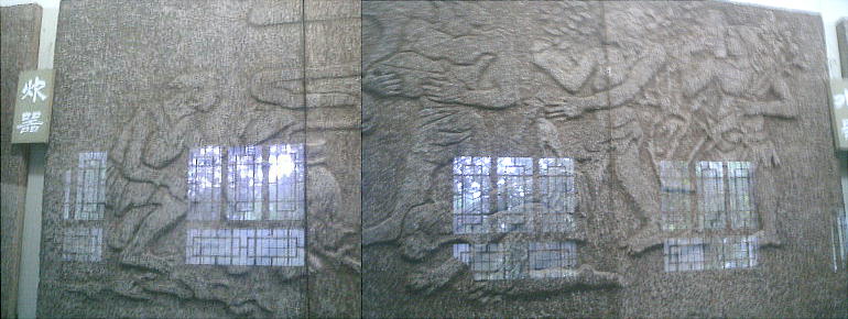 壁には全面にこういうレリーフが飾られている。「制作」とか「器」とか「戦争」とかののテーマごとになっており、その