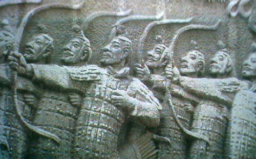 東門に整列して始皇帝の棺を送ったと思われる。遺体を埋葬したあと、地下宮殿の真上に大きなピラミッドの墳丘が築