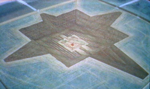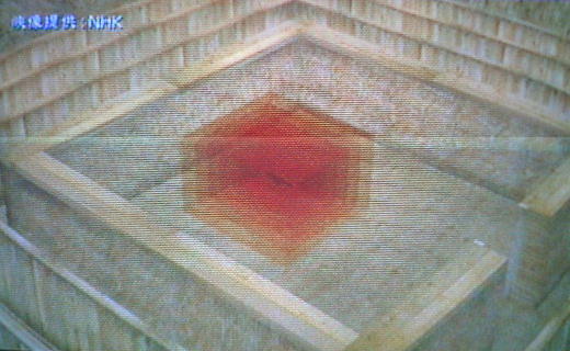 工事中の墳丘。中央の穴はさらに深く掘り進められ最終的には3段の層になったと思われる。