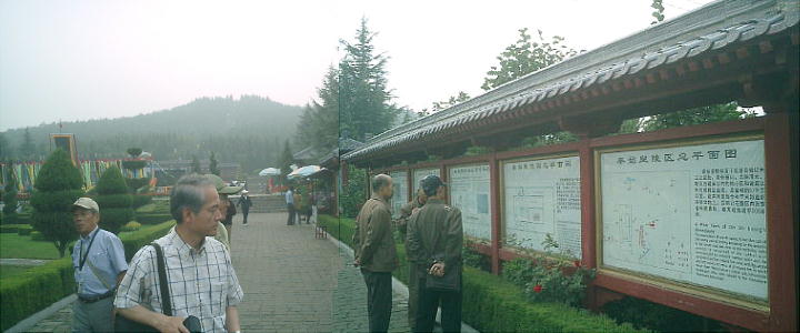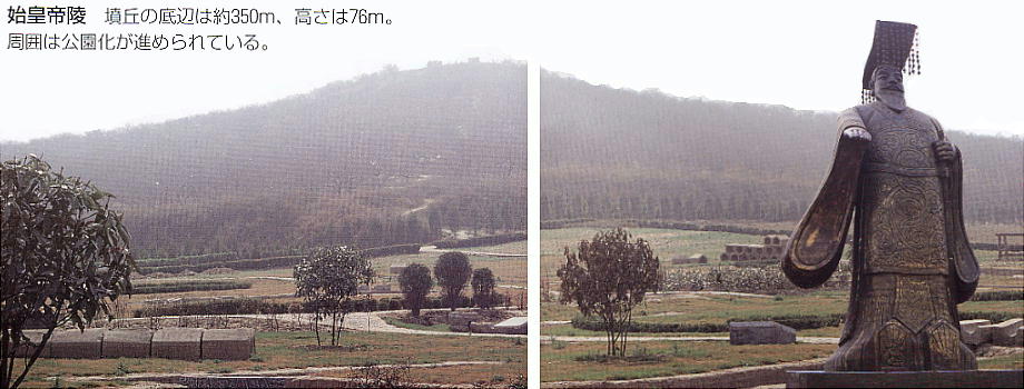 紀元前209年、始皇帝はここに葬られた。現在、前方の高さ70m程の墳丘が残るだけだが、地中には壮大な宮殿が造