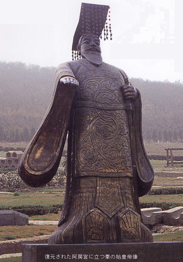 の戦国6雄を次々と滅ぼし、「秦」帝国の成立を実現した。三皇五帝から採用した「皇帝」の称号を定め、自ら始皇帝と