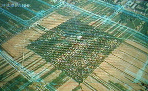 中央の大きな墳丘の地下に司馬遷の史記に記されている謎の地下宮殿があったと思われる。墳丘の周りは2重の城壁で