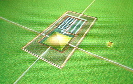 確認されている。大きな墳丘の足下に見えるのが「寝殿」である。始皇帝に供える食べ物が置かれていた。