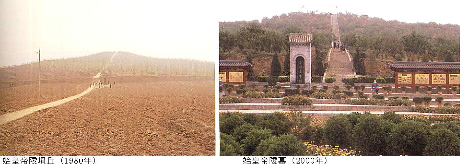 西安市の東30km。秦の始皇帝(前259〜前210、在位前246〜前210)の墓で、高さ55m、周囲2000m。