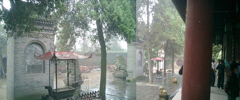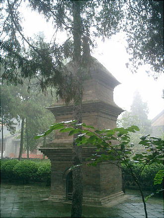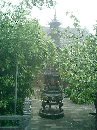 中庭は落ち着いた感じで静かだった。霧のような小雨が旅情をかき立てる。西遊記で有名な三蔵法師だが、ここに眠っていたのか。