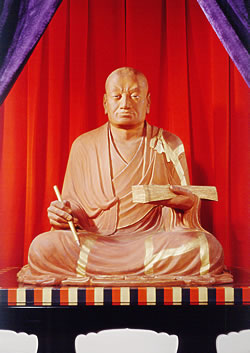 貝葉(インドのお経)を手にしており、天竺からの帰国後、経典の翻訳作業中の玄奘三蔵の姿をモデルにしたものとされ