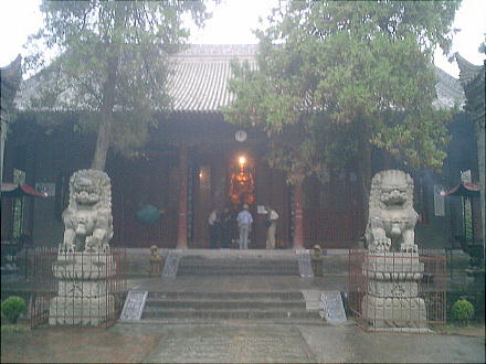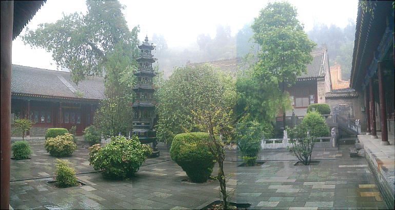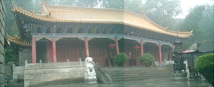 り、訪れたこの日は霧雨が降っていて、静かで美しい佇まいを見せていた。大雄宝殿には本尊釈迦如来坐像があり、この金