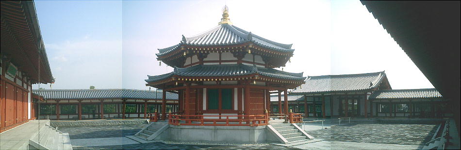 この壁画を 納入する為に、平成3年に建立された大唐西域壁画殿の天井は、75cm角の天井板 が248枚ならぶ格天