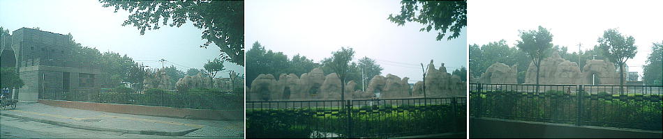 西安城壁を見て、郊外の茂陵、乾陵、法門寺をめざす。上の写真はかっての唐代の長安城の西の門にあたるところ。獅子や