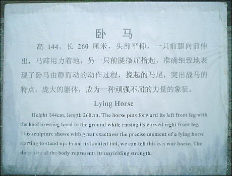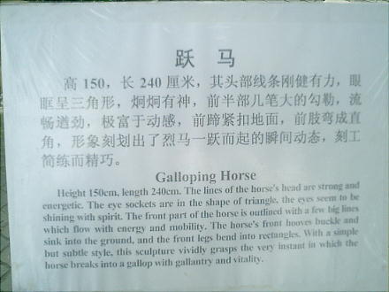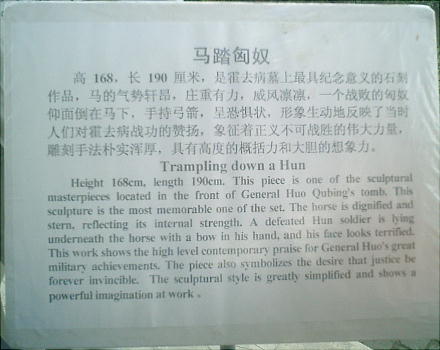 墓は霍去病が匈奴との戦いに明け暮れた「祁連山」の形を象った塚で、墓前に武帝がその戦功をたたえて建てた大型の石刻