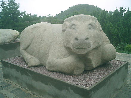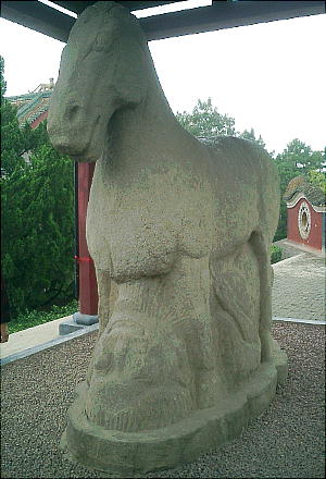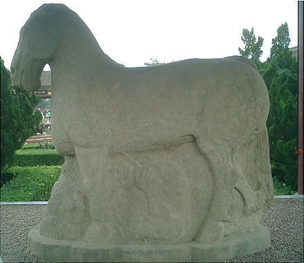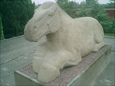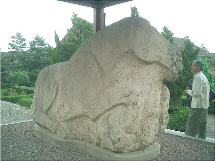 茂陵博物館にある、自然石を生かした動物の石刻。中国の彫刻の初期作品で、匈奴を踏む馬、臥牛など前漢期の傑作がそろ