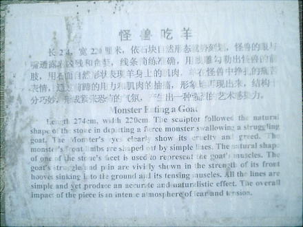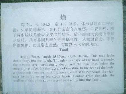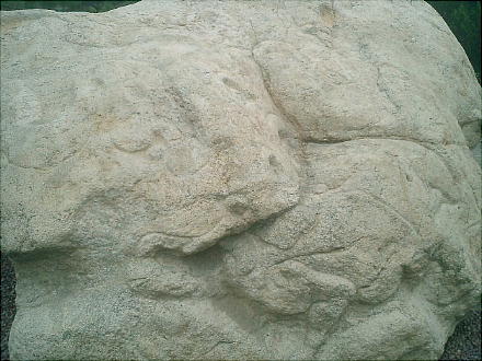 これは怪獣がなにか蛙のようなもの銜えている。これらの石像は、もともと自然石の中から、それらしいものを加工してつくった。