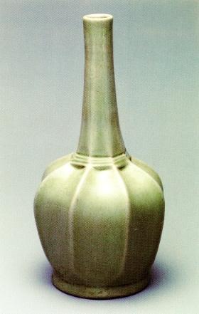 青磁 八稜形長頸瓶 (せいじ はちりょういがた ちょうけいへい)唐時代 9世紀