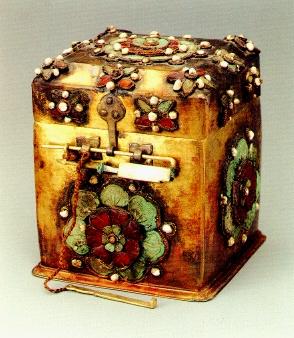 金貴石貼付 宝相華文函 (きんきせきてんぷ ほうそうげもんかん)。舎利は4つ発見され3つはダミーだった。1つが