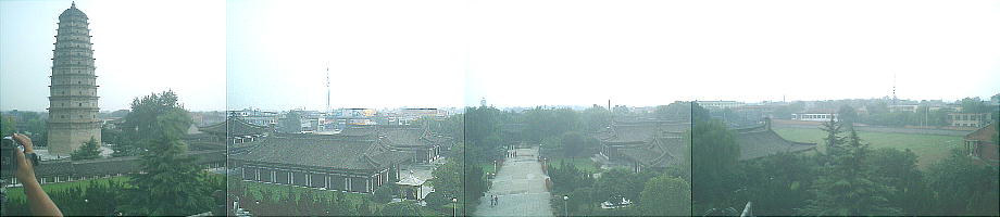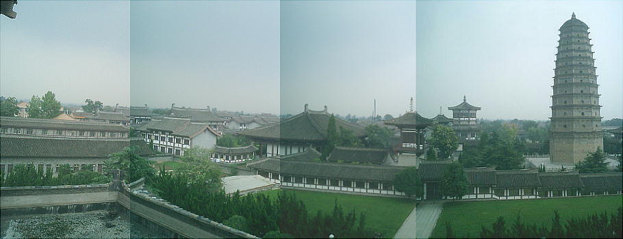 博物館のベランダから見た法門寺周辺。塔の左側(上)と右側(下)。