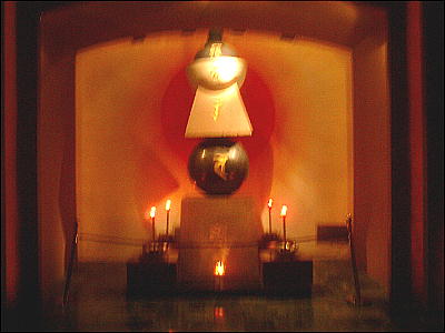 い。中は円形になっていて、派手な装飾にいろどられた壁の真ん中に祭壇があり、仏舎利を納めていた箱もがここにあっ