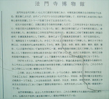 どというものもあった。本家のインドにも何も残っていないので、唯一法門寺だけが本物の佛舎利を持つ寺であるという