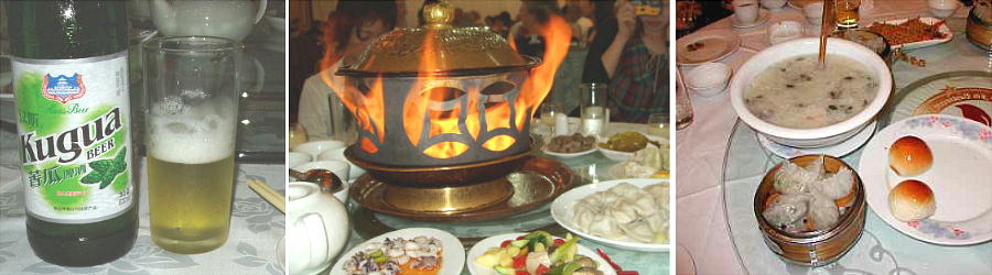 夕食は、今回初めて肉がいっぱい出てきた「しゃぶしゃぶ鍋」。昨夜と同じような火焔鍋もあったが、豚肉とマトンと牛肉を